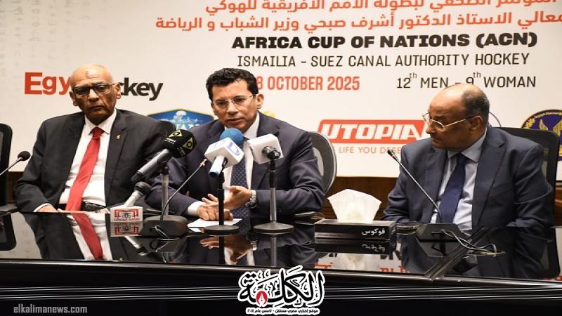 شهد الدكتور أشرف صبحي وزير الشباب والرياضة المؤتمر الصحفي الذي أقيم بالمركز التعليم المدني بالجزيرة للإعلان عن تفاصيل بطولة الأمم الأفريقية للهوكي للرجال والسيدات والمؤهلة إلى كأس العالم 2026، والتي تستضيفها مصر على ملاعب هيئة قناة السويس بمدينة الإسماعيلية خلال الفترة من 11 إلى 18 أكتوبر الجاري.