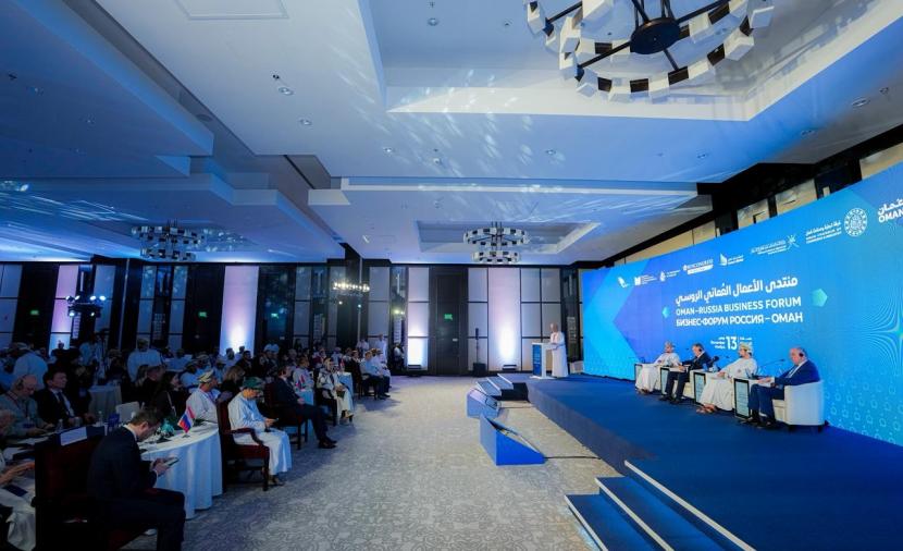 عُقد يوم الخميس منتدى الأعمال العُماني الروسي بتنظيم من غرفة تجارة وصناعة عُمان بالتعاون مع وزارة التجارة والصناعة وترويج الاستثمار ومؤسسة روسكونغرس الروسية؛ بحضور معالي قيس بن محمد اليوسف اليوسف وزير التجارة والصناعة وترويج الاستثمار، ومعالي مارات خوسنولين نائب رئيس وزراء روسيا الاتحادية، وسعادة الشيخ فيصل بن عبدالله الرواس رئيس مجلس إدارة غرفة تجارة وصناعة عُمان، ورشيد تمريزوف رئيس جمهورية قراتشاي شركيس، وبمشاركة واسعة من كبار المسؤولين وأصحاب الأعمال والمستثمرين من كلا البلدين.