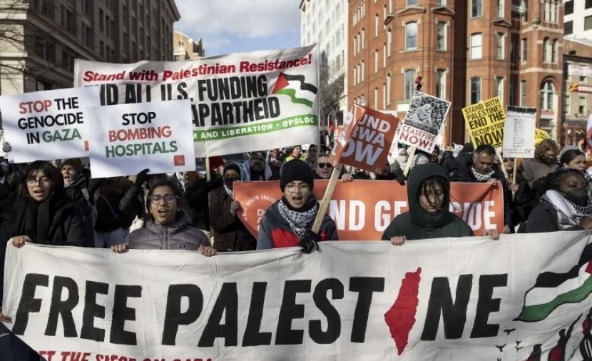 شارك آلاف المتظاهرين في مسيرة بالعاصمة الأميركية واشنطن، أمام مبنى الكونجرس رغم انخفاض درجات الحرارة، مطالبين بوقف إطلاق النار بشكل فوري في قطاع غزة.