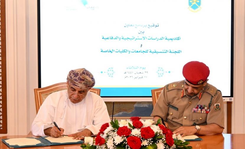 وقعت أكاديمية الدراسات الاستراتيجية والدفاعية على برنامج تعاون مع عدد من الجامعات والكليات الخاصة بسلطنة عُمان.