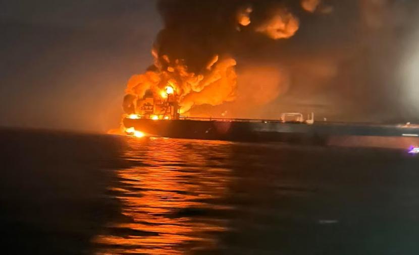 وقالت وزارة النقل التركية إن ناقلة النفط كايروس التي يبلغ طولها 274 مترا تعرضت لانفجار واشتعلت فيها النيران أمس الجمعة خلال توجهها من مصر إلى روسيا. وأضافت أن قوارب إنقاذ نجحت في إجلاء الطاقم في حين استمرت جهود إخماد الحريق.