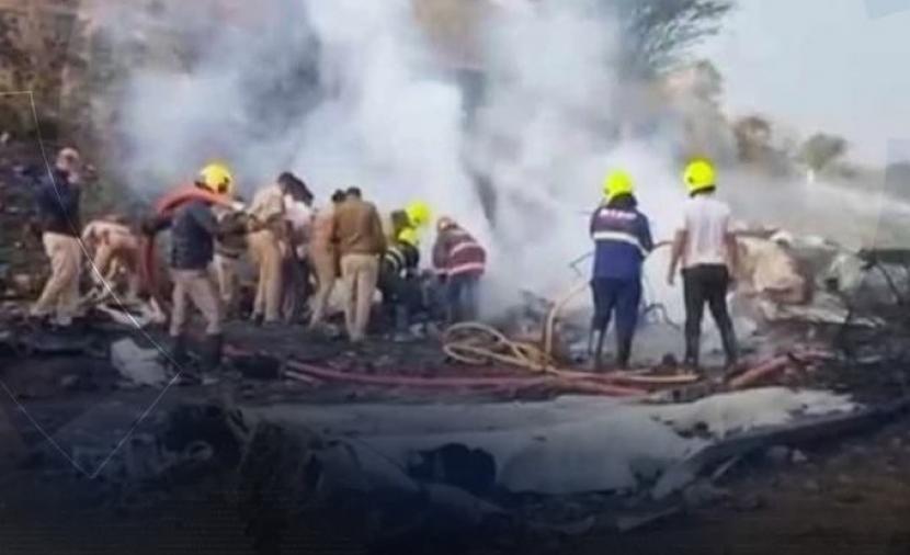 #WATCH | A plane crash reported in Baramati, Maharashtra. More details awaited.