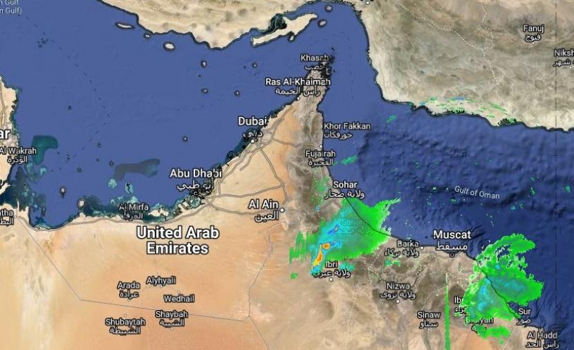 قالت المديرية العامة للأرصاد الجوية إن رادار الطقس بمسقط يوضح تواجد خلايا رعدية ماطرة على أجزاء من محافظات الظاهرة وشمال الباطنة وجنوب الشرقية .