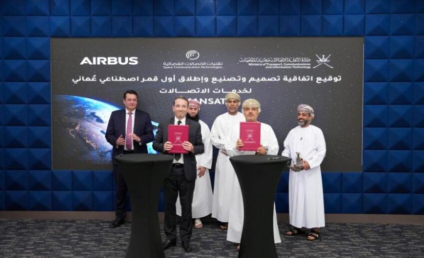 وقع الاتفاقية من جانب الوزارة معالي المهندس سعيد بن حمود المعولي وزير النقل والاتصالات وتقنية المعلومات، فيما وقعها من جانب شركة إيرباص آلان فوريه الرئيس التنفيذي لأنظمة الفضاء.