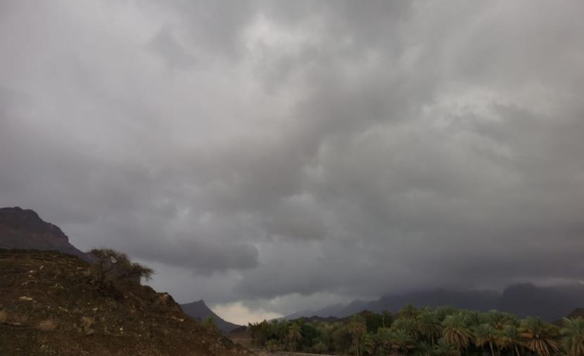 توضح آخر الصور الجوية تزايد فرص أهطول أمطار متفرقة على محافظة مسندم والمناطق الساحلية المطلة على بحر عُمان.