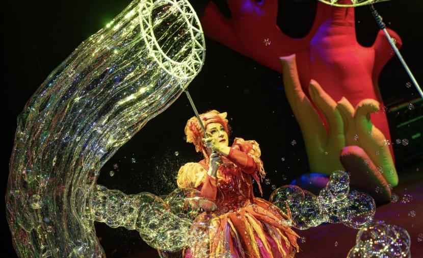 المدهش في العرض أنه يمزج بين الخيال، والواقع ، والكوميديا، والمتعة، والفنون البصرية المذهلة، والألعاب البهلوانية خلالها شاهد الجمهور قصّة خياليّة نابضة بالحياة، تُثير فيها فقاعات الصابون عوالم المرح، والسحر، والضحك، جامعا بين فنون المسرح، والتمثيل الصامت، والاستعراض، وعروض الدمى، والأكروبات، والسحر، وفنون تشكيل الرمل، فقدّم فرجة تناسب جميع الأعمار، داعيا الجمهور لخوض غمار الحياة بحرّيّة، وإبداع لا يكبحهما حدود العمر، وكلّ هذا جاء في عرض عالمي جرى عرضه في مناطق مختلفة من العالم، وحاز على إعجاب أكثر من نصف مليون متفرج في ٤٢ دولة عربية وأجنبية منذ عام ٢٠١٢م، ومن بين أشهر عروضه العُرض الذي جرى تقديمه في حفل افتتاح دورة الألعاب الأولمبية الشتوية في سوتشي.