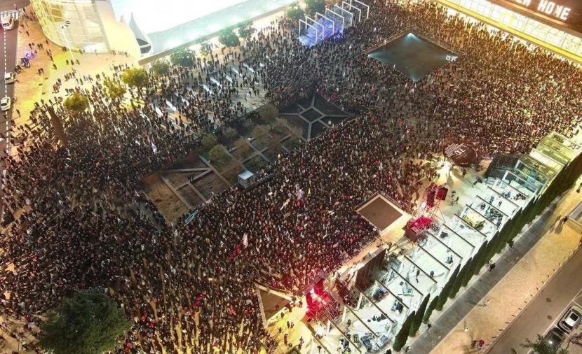 يتظاهر الآلاف من الإسرائيليين في شوارع تل أبيب للمطالبة بإسقاط حكومة بنيامين نتنياهو وإجراء انتخابات جديدة، بحسب ما نشرت وسائل إعلام إسرائيلية.