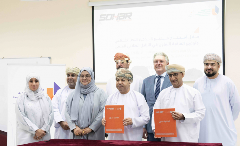 وفي ذات الصدد، تم توقيع اتفاقية مع جامعة التقنية والعلوم التطبيقية بصحار لإطلاق برنامج يضم فرصاً للتبادل الطلابي والتدريب العملي في المشاريع المتعلقة ببحوث الذكاء الاصطناعي، حيث يعد هذا التعاون خطوة جديدة في سجل شراكة الميناء والمنطقة الحرة والجامعة لتنمية الكوادر الوطنية وتعزيز الابتكار لديهم، كما يهدف التعاون لإعداد الطلاب لسوق العمل من خلال تزويدهم بمهارات عملية وبحثية مختلفة ستُعزز من قدراتهم في مواجهة التحديات بحيث ستقدم فرص فريدة للتحليل والابتكار في سبيل حل بعض من المشكلات التي تواجه القطاع.