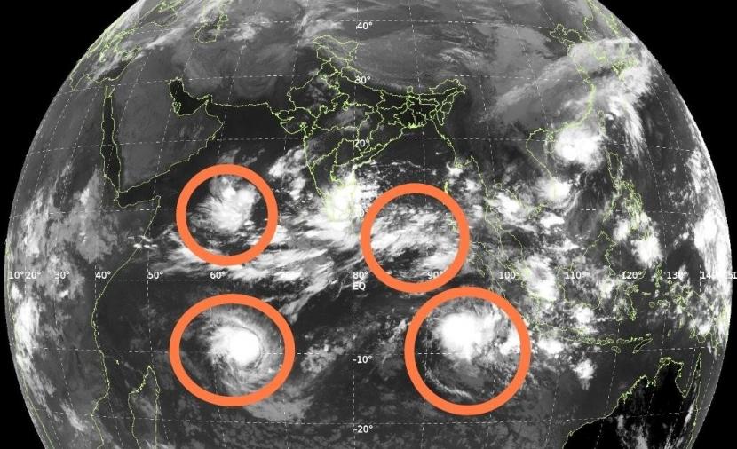 تشهد أحواض المحيط الهندي نشاطا مداريا غير مسبوق، حيث رُصدت اليوم الثلاثاء أربع حالات مدارية نشطة في وقت واحد، وفق ما أوردته الصحافة الهندية والبنغالية.