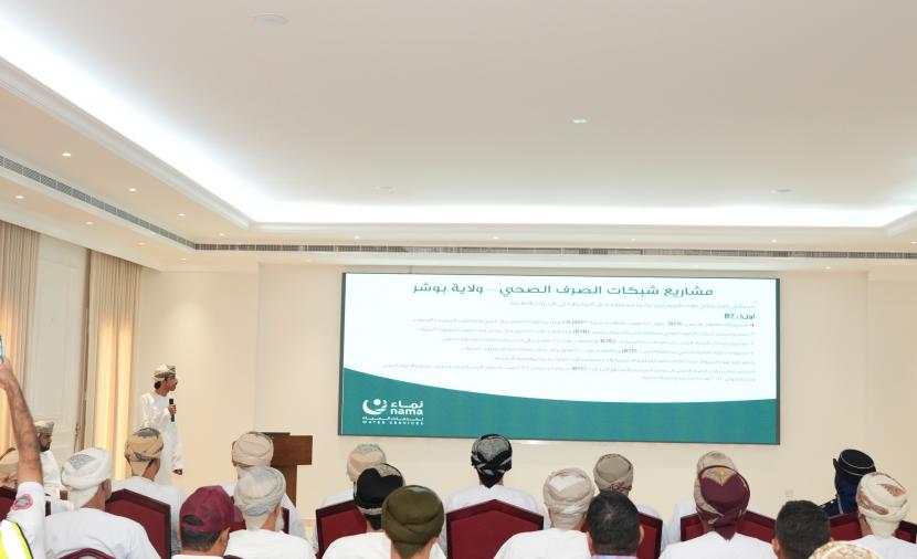 نظمت نماء لخدمات المياه لقاءً مجتمعيًا في مكتب والي بوشر، وذلك للتعريف بمشاريع شبكات المياه والصرف الصحي بولاية بوشر، بحضور سعادة والي بوشر، وأعضاء مجلسي الشورى والبلدي، والمختصين من الجهات الحكومية ذات العلاقة، إلى جانب شيوخ ورشداء الولاية.