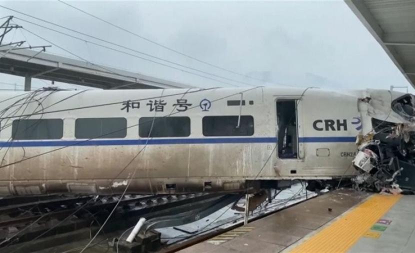 ووقع الحادث في أثناء اختبار معدات مسح زلزالي ودخل العمال مسارا في جزء منحن داخل محطة قطارات بلدة لويانغ في كونمينغ.