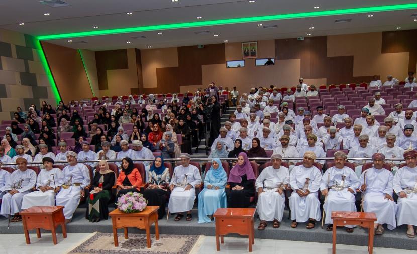 بدأ برنامج الحفل بالمرور على قاعات المسرح وهي “قاعة العُلماء، وقاعة العِلم، وقاعة الاجتماعات، وقاعتي التدريب (جلس العُلماء)”، أعقب ذلك زيارة معرض اللوحات الفنية لطلبة مدارس المحافظة، الذي احتوى على 53 لوحة عبرت عن فرحة الوطن “النسخة الثامنة”، أعقبه عُزف السلام السلطاني، بعد ذلك مساجلة شعرية طلابية بعنوان “مسرح الأجيال” جسدت دور المسرح التعليمي، وأهميته في احتواء مواهب الطلبة، وتطوير قدراتهم.
