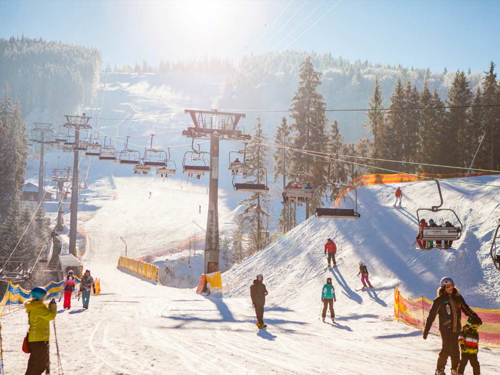 ويتوفر أيضًا تأجير لمعدات التزلج ومدربون محترفون لتعليم المبتدئين، بالإضافة إلى ثمانية مصاعد متحركة وسبعة حواجز على شكل T و13 مسار تزلج تناسب جميع المستويات.