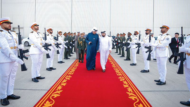 ودّع سموّ الشيخ أحمد بن محمد بن راشد آل مكتوم، النائب الثاني لحاكم دبي، الشيخ عبدالله علي عبدالله السالم الصباح، وزير الدفاع بدولة الكويت الشقيقة، في ختام زيارته إلى الدولة، التي ترأّس خلالها وفد دولة الكويت الشقيقة المشارك في فعاليات أسبوع «الإمارات والكويت.. إخوة للأبد».