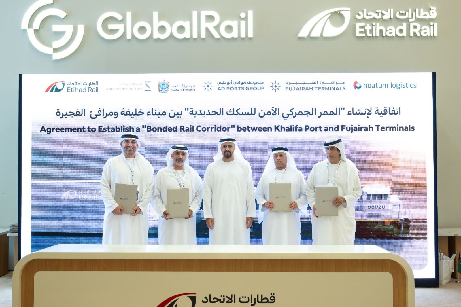 شهد سمو الشيخ ذياب بن محمد بن زايد آل نهيان، نائب رئيس ديوان الرئاسة للشؤون التنموية وأسر الشهداء، رئيس مجلس إدارة شركة قطارات الاتحاد، توقيع اتفاقية بين قطارات الاتحاد المطور والمشغل لشبكة السكك الحديدية الوطنية في دولة الإمارات، وجمارك أبوظبي، وجمارك الفجيرة، ومجموعة موانئ أبوظبي، و مرافئ الفجيرة، وشركة نواتوم للخدمات اللوجستية، لإطلاق مشروع الممر الجمركي الآمن لقطار الاتحاد بين ميناء خليفة في أبوظبي ومرافئ الفجيرة.