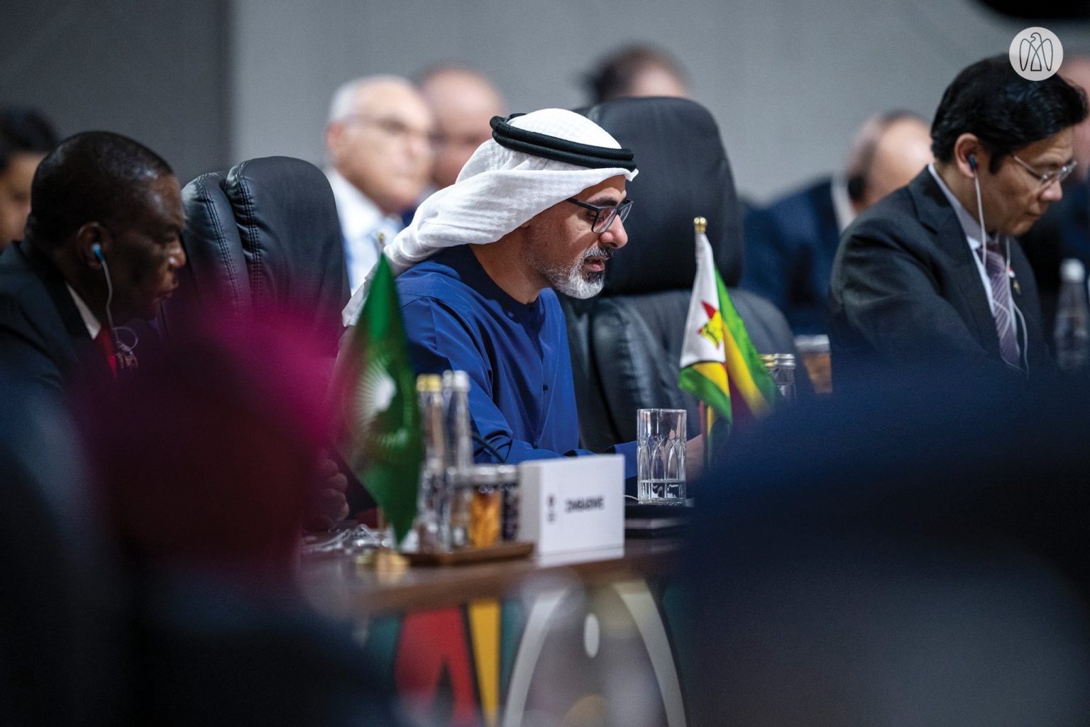 وألقى سموّه كلمة دولة الإمارات العربية المتحدة خلال الجلسة الافتتاحية في القمة، التي عُقدت تحت عنوان: “بناء اقتصاداتنا؛ دور التجارة، تمويل التنمية وعبء الديون”، حيث استهلها بنقل تحيات صاحب السمو الشيخ محمد بن زايد آل نهيان، رئيس الدولة ،حفظه الله، إلى القادة المشاركين وتمنياته لهم بالتوفيق في أعمال القمة، معرباً عن شكره لرئيس جمهورية جنوب إفريقيا الصديقة فخامة سيريل رامافوزا، على دعوته لدولة الإمارات للمشاركة في أعمال القمة الحالية.