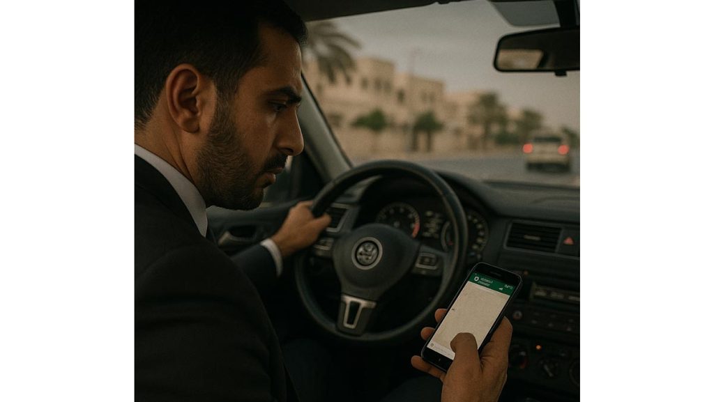 • 800 درهم و4 نقاط مرورية، عقوبة مخالفة الانشغال عن الطريق أثناء قيادة المركبة واستعمال الهاتف أو أي صورة.