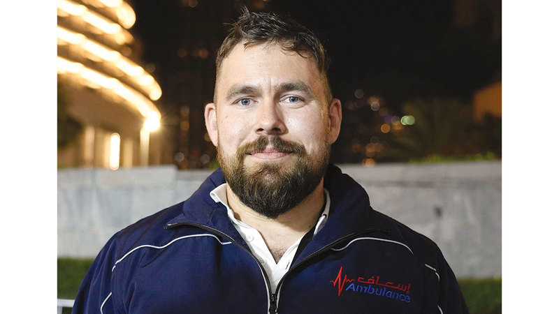 هناك كان يقف كريس لاوسن، متطوع بريطاني ضمن فريق «أسعفني» التطوعي التابع لمؤسسة دبي لخدمات الإسعاف، دأب على التطوع لمدة سبع سنوات كاملة من إجمالي عشر سنوات قضاها في دبي.
