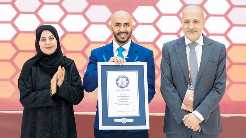 سجلت إمارة الفجيرة إنجازاً علمياً جديداً بدخولها موسوعة غينيس للأرقام القياسية، بعد تنظيم أكبر ورشة علمية لحبوب لقاح العسل في العالم، بمشاركة 358 عالماً وخبيراً وباحثاً وطالباً، ضمن فعاليات النسخة الثانية من «مؤتمر الفجيرة الدولي لأبحاث النحل».