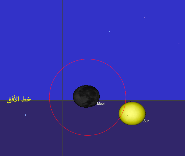 وقال، مدير مركز الفلك الدولي، المهندس محمد شوكت عودة: “سيكون القمر عند غروب الشمس يوم الثلاثاء ملاصقًا للشمس في جميع مناطق الجزيرة العربية. فعلى سبيل المثال، سيبلغ البعد الزاوي بين الشمس والقمر في مدينة الرياض وقت الغروب درجةً واحدةً فقط. وبما أن هذه المسافة تُقاس بين مركزي قرصي الشمس والقمر، فإن ذلك يعني أن الهلال على فرض وجوده سيقع على بُعد نصف درجة تقريبًا من حافة قرص الشمس.
