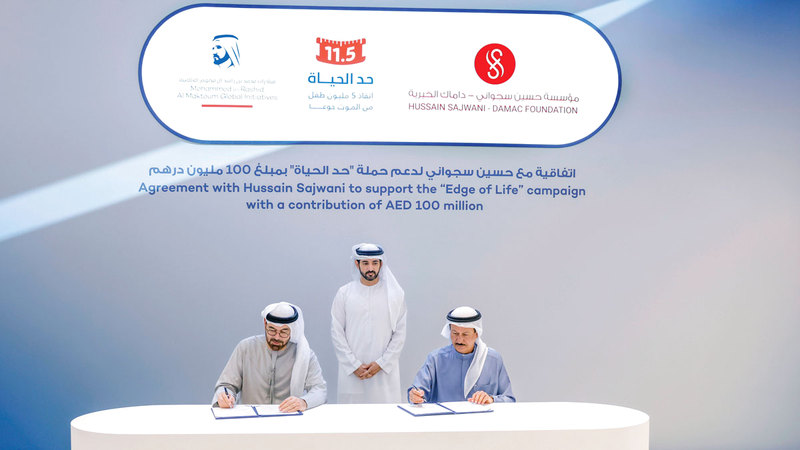 بحضور سموّ الشيخ حمدان بن محمد بن راشد آل مكتوم، ولي عهد دبي نائب رئيس مجلس الوزراء وزير الدفاع رئيس المجلس التنفيذي لإمارة دبي، أعلنت «مؤسسة حسين سجواني داماك الخيرية» إسهامها بمبلغ 100 مليون درهم، دعماً لحملة «حد الحياة» لإنقاذ خمسة ملايين طفل من الموت جوعاً، التي أطلقها صاحب السموّ الشيخ محمد بن راشد آل مكتوم، نائب رئيس الدولة رئيس مجلس الوزراء حاكم دبي، رعاه الله، بالتزامن مع شهر رمضان الكريم، لجمع مليار درهم على الأقل، يتم استثمارها في تنفيذ برامج ومشاريع مستدامة، تسهم في مكافحة جوع الأطفال في العالم.