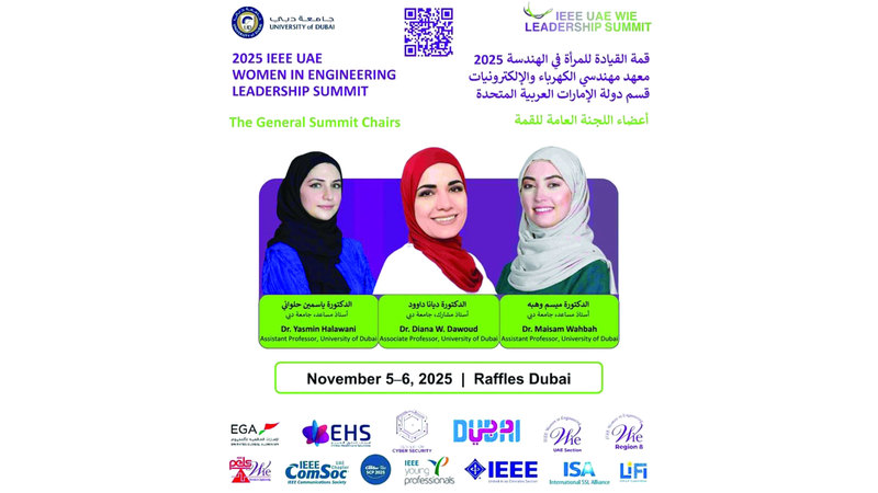 تستضيف دبي الأربعاء المقبل «قمة القيادة للمرأة في الهندسة 2025»، التابعة لمعهد مهندسي الكهرباء والإلكترونيات (IEEE) فرع دولة الإمارات، بمشاركة ما يزيد على 200 من الأعضاء والقيادات النسائية يُمثّلن أكثر من 10 دول. وتهدف القمة، التي تعقد على مدار يومين، إلى تعزيز دور المرأة في مجالات العلوم والتكنولوجيا والهندسة والرياضيات من خلال الإرشاد المهني، وتوسيع شبكة العلاقات، وتطوير المهارات القيادية، وتمكين التعاون بين القطاعين الأكاديمي والصناعي بما يُعزّز البيئة الابتكارية والتميّز المهني.