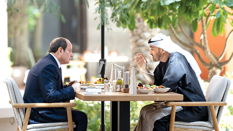 جاء ذلك خلال استقبال سموه، في أبوظبي، الرئيس عبدالفتاح السيسي الذي قام بزيارة أخوية إلى الدولة.
