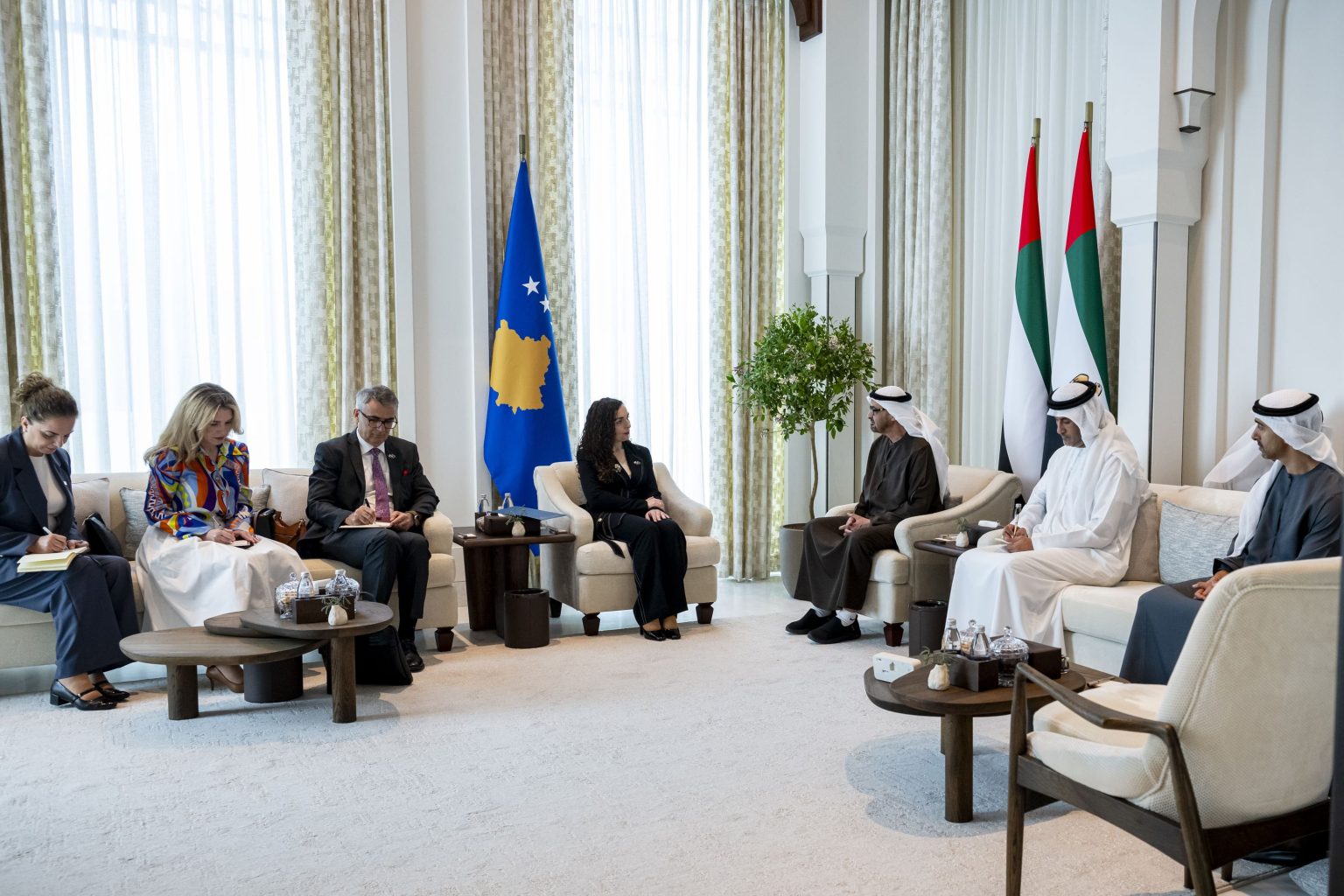 بحث صاحب السمو الشيخ محمد بن زايد آل نهيان رئيس الدولة “حفظه الله” و الدكتورة فيوسا عثماني رئيسة جمهورية كوسوفو اليوم مختلف جوانب علاقات البلدين وآفاق تطويرها خاصة في المجالات الاقتصادية والتنموية لما فيه مصلحة شعبيهما.