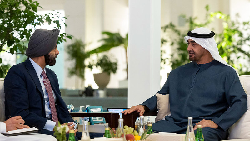 استقبل صاحب السمو الشيخ محمد بن زايد آل نهيان، رئيس الدولة، أمس، رئيس مجموعة البنك الدولي أجاي بانغا.