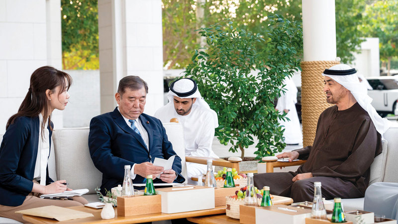 جاء ذلك خلال استقبال سموه، بقصر الشاطئ في أبوظبي، المبعوث الخاص لرئيسة الوزراء رئيس رابطة الصداقة البرلمانية اليابانية الإماراتية، إيشيبا شيغيرو، الذي سلم الرسالة.