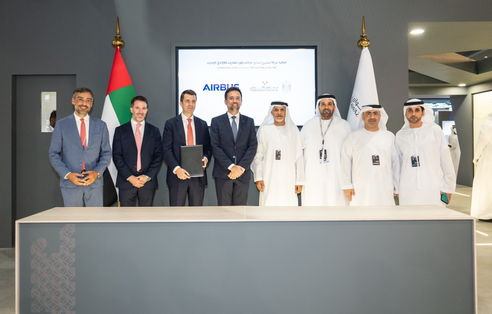 وقّع اتفاقية الشراكة خلال النسخة الرابعة من «اصنع في الإمارات 2025» كل من الرئيس التنفيذي للعمليات في مجلس التوازن، شريف هاشم الهاشمي، ورئيس شركة «إيرباص» في منطقة أفريقيا والشرق الأوسط، جابرييل سيميلاس، بحضور الأمين العام لمجلس التوازن، الدكتور ناصر حميد النعيمي، إلى جانب عدد من ممثلي الجانبين.
