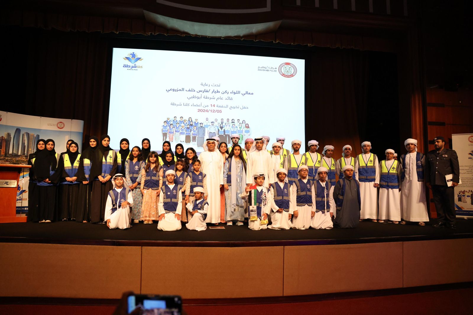 حضر الحفل عدد من ممثلي الجهات الحكومية والخاصة الداعمة لمنظومة كلنا شرطة، والمتطوعين من فئة أقل من 18 سنة وذويهم.