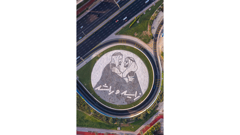 ويأتي العمل في إطار فعاليات الشهر الوطني، وقد تم تنفيذه عند تقاطع شارع الشيخ زايد، بالقرب من حديقة زعبيل، وهو عبارة عن صورة تجمع المغفور لهما الشيخ زايد بن سلطان آل نهيان، والشيخ راشد بن سعيد آل مكتوم، طيّب الله ثراهما، تتوسط الدوار المقابل لمبنى البرواز، في رسالة تعكس مدى العرفان والوفاء لمسيرة القائدين المؤسسين، والفخر بإرثهما الوطني الكبير، ورؤيتهما التي شكّلت الأساس الراسخ لنهضة دولة الإمارات ومسيرتها التنموية التي حفلت، على مدار أكثر من نصف قرن من الزمان، بالعديد من الإنجازات الحضارية المهمة.