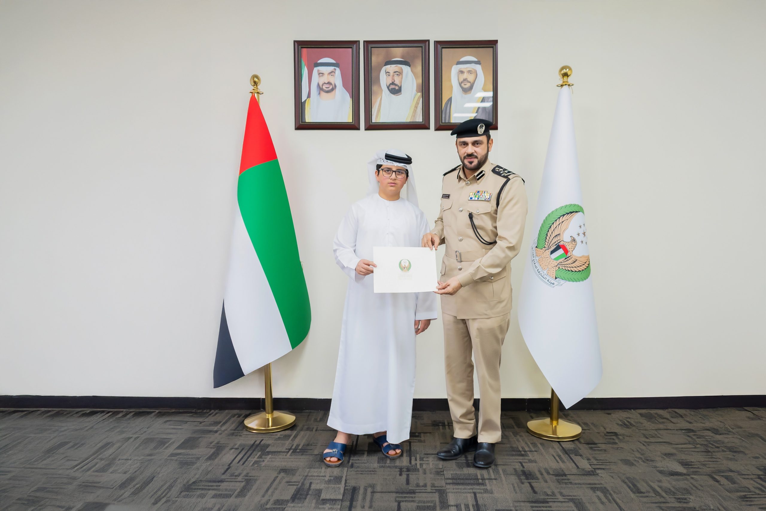 كرّم مدير عام هيئة الشارقة للدفاع المدني، العميد يوسف عبيد حرمول الشامسي، الطفل سعود أحمد الجروان (10 سنوات)، تقديراً لتصرّفه الواعي ومسؤوليته المجتمعية، عقب قيامه بالاتصال على رقم الدفاع المدني (997) للإبلاغ عن حريق اندلع في إحدى المركبات، ويأتي هذا التكريم في إطار حرص الهيئة على تعزيز ثقافة السلامة، وتشجيع السلوكيات الإيجابية التي تسهم في حماية الأرواح والممتلكات، إلى جانب دعم المبادرات الفردية التي تسهم في رفع مستوى الجاهزية المجتمعية، بما يعكس أهمية دور أفراد المجتمع، على اختلاف أعمارهم، في دعم منظومة الطوارئ والاستجابة السريعة.