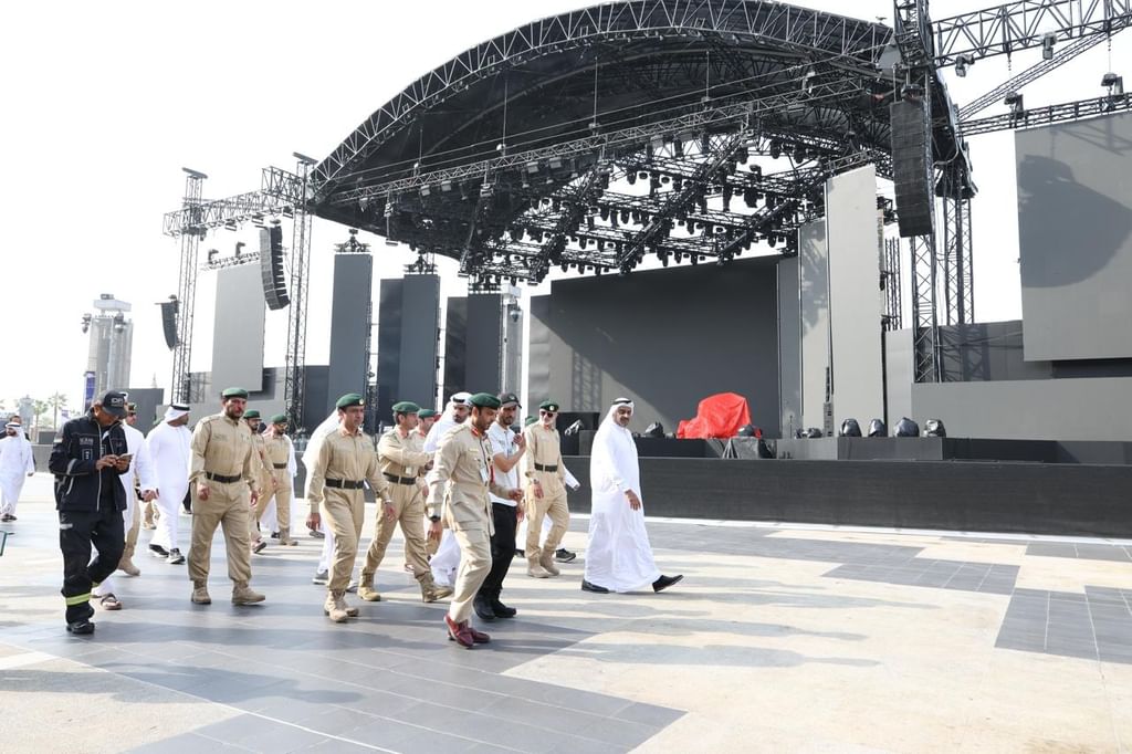 جاء ذلك خلال تفقد المزروعي التجهيزات الميدانية لاحتفالات رأس السنة الميلادية 2026، وذلك عبر جولة على أهم المواقع التي ستشهد عروضاً للألعاب النارية.