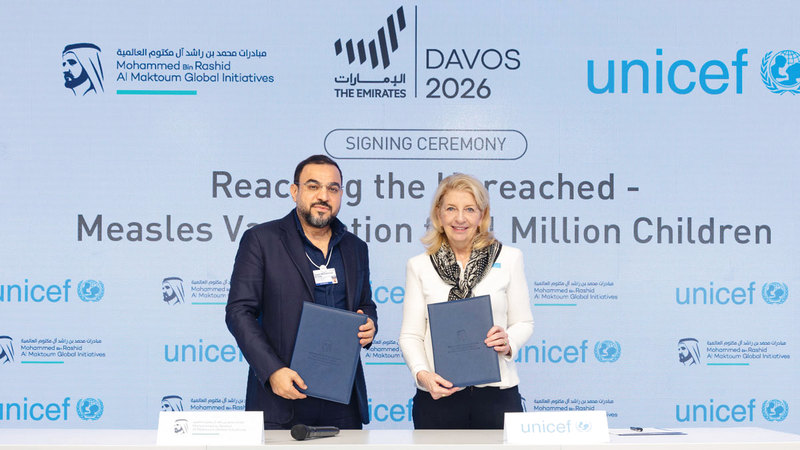 ووقع المدير التنفيذي للمؤسسة سعيد العطر والمديرة التنفيذية لمنظمة الأمم المتحدة للطفولة «اليونيسف» كاثرين راسل، خطاب نوايا بالشراكة بين الجانبين، تدعم بموجبه مؤسسة المبادرات «اليونيسف»، لتنفيذ برامج تطعيم شاملة ضد مرض الحصبة يستفيد منها مليون طفل.