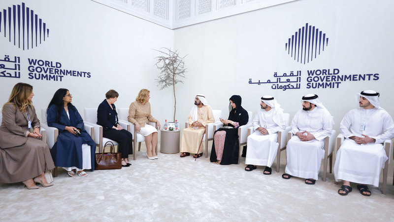 التقى صاحب السموّ الشيخ محمد بن راشد آل مكتوم، نائب رئيس الدولة رئيس مجلس الوزراء حاكم دبي، رعاه الله بحضور سموّ الشيخ حمدان بن محمد بن راشد آل مكتوم، ولي عهد دبي نائب رئيس مجلس الوزراء وزير الدفاع رئيس المجلس التنفيذي لإمارة دبي، وسموّ الشيخ أحمد بن محمد بن راشد آل مكتوم، النائب الثاني لحاكم دبي رئيسة وزراء جمهورية لاتفيا، إيفيكا سيلينا، وذلك ضمن أعمال اليوم التمهيدي للقمة العالمية للحكومات 2026، التي تنطلق اليوم تحت شعار «استشراف حكومات المستقبل»، وتستمر على مدى ثلاثة أيام.