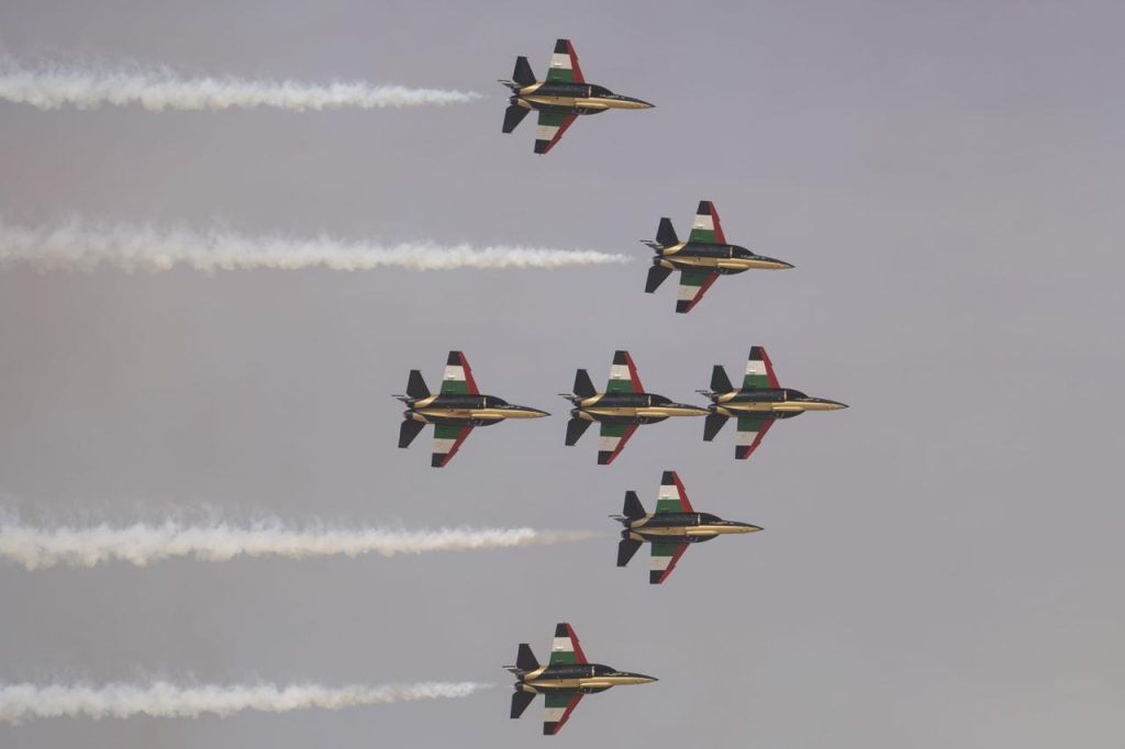 تنظم القوات المسلحة الإماراتية وفريق “فرسان الإمارات للاستعراضات الجوية”، عروضاً جوية مبهرة عصر يوم السبت 17 يناير في مختلف إمارات الدولة.