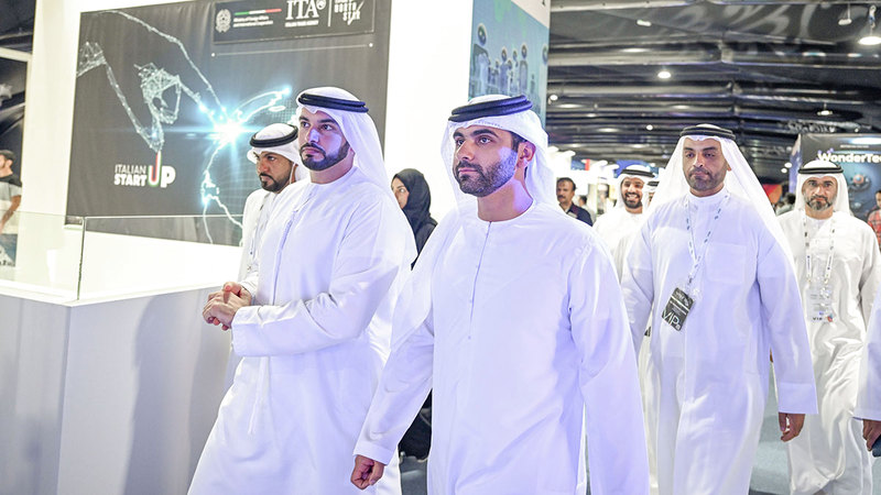 واطلع سموّه، خلال الزيارة التي رافقه خلالها نائب رئيس مجلس إدارة غرفة دبي للاقتصاد الرقمي، أحمد بن بيات، ومدير عام غرف دبي، محمد علي راشد لوتاه، ونائب رئيس غرفة دبي للاقتصاد الرقمي، سعيد القرقاوي، والمدير التنفيذي لمؤسسة محمد بن راشد لتنمية المشاريع الصغيرة والمتوسطة، عبدالباسط الجناحي، على أبرز الشركات المشاركة في المعرض، التي تزيد على 1800 شركة ناشئة من أكثر من 100 دولة.