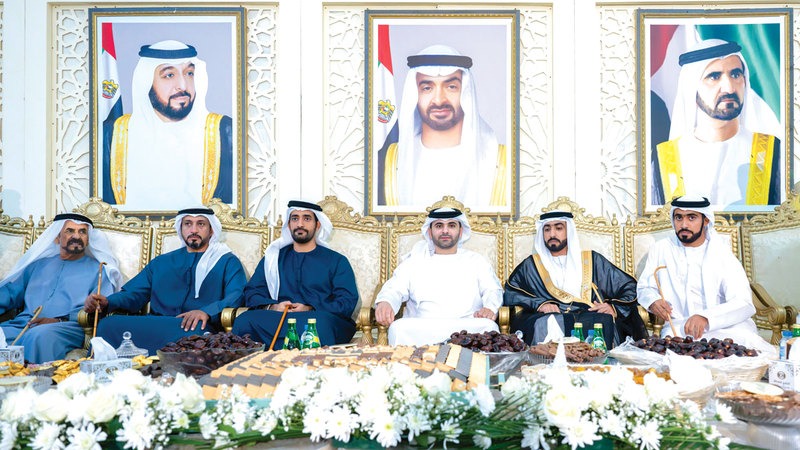 حضر سمو الشيخ منصور بن محمد بن راشد آل مكتوم، رئيس اللجنة الأولمبية الوطنية، حفل الاستقبال الذي أقامته عائلة المرحوم علي مطر بن حفشة الكتبي، في دبي، بمناسبة زفاف نجله سيف، إلى كريمة راشد علي بن كليب الكتبي.