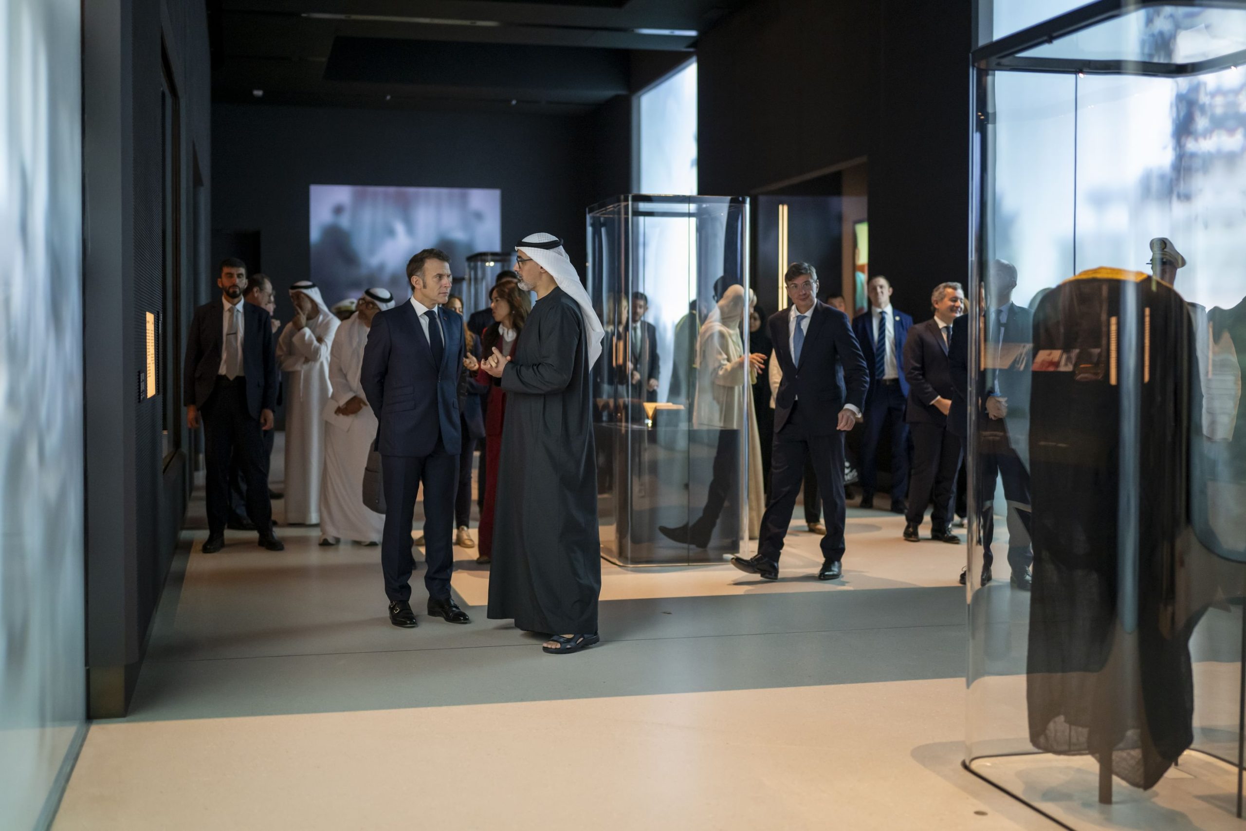زار رئيس الجمهورية الفرنسية إيمانويل ماكرون، متحف زايد الوطني في المنطقة الثقافية بجزيرة السعديات، يرافقه سمو الشيخ خالد بن محمد بن زايد آل نهيان، ولي عهد أبوظبي رئيس المجلس التنفيذي لإمارة أبوظبي.