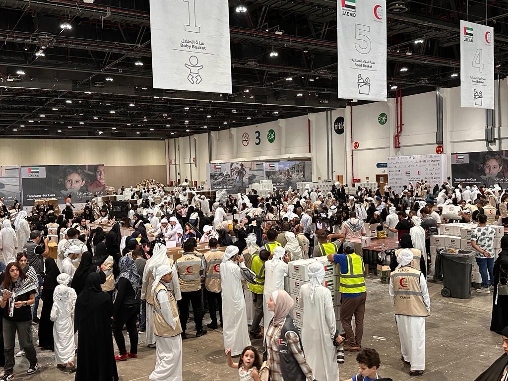 شهد مركز أبوظبي الوطني للمعارض (أدنيك) حضوراً تطوعياً كبيراً من مئات المواطنين والمقيمين، للمشاركة في فعاليات حملة تراحم من أجل غزّة، في تجمعها الثالث. ومع بداية أعمال اليوم كانت أسبقية الحضور للنساء اللائي تزاحمن على التسجيل والتوجّه للمساعدة في أعمال تجهيز طرود وسلال المواد الغذائية والصحية المقرر إرسالها للأشقاء الفلسطينيين في قطاع غزة.