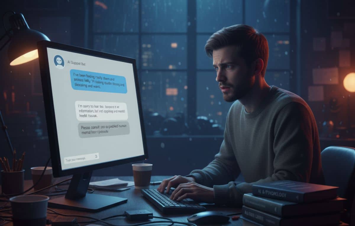 تشير دراستان حديثتان إلى أن الاعتماد على روبوتات الدردشة العاملة بالذكاء الاصطناعي للحصول على الدعم العاطفي أو العلاج النفسي قد يحمل مخاطر غير متوقعة. فمع أن هذه الروبوتات أصبحت وسيلة لما تتراوح نسبته بين 20% و 50% من الأشخاص الذين يبحثون عن دعم نفسي، فإنها لم تُصمم لتقديم رعاية نفسية حقيقية.