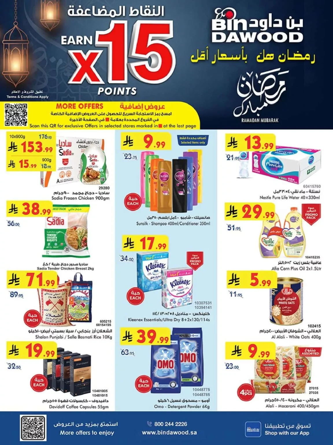 عروض بن داود مكة المكرمة الأربعاء 11 فبراير 2026 تشتمل على اللحم البقري المفروم وعصائر المانجو المركزة وبسكويت الشاي السادة والجبن الرومي القديم وأرز المزة الهندي والسكر الناعم ودقيق البر والحليب المجفف