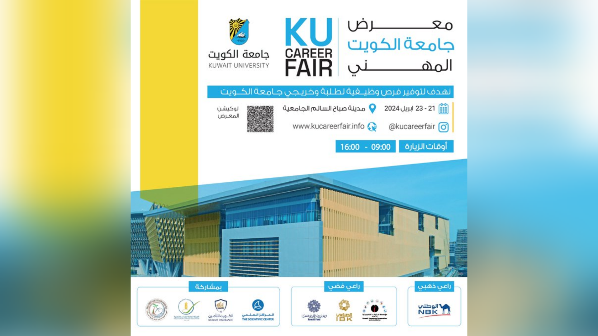 تقيم عمادة شئون الطلبة معرض جامعة الكويت المهني 2321 أبريل 2024 بمدينة صباح السالم الجامعية.