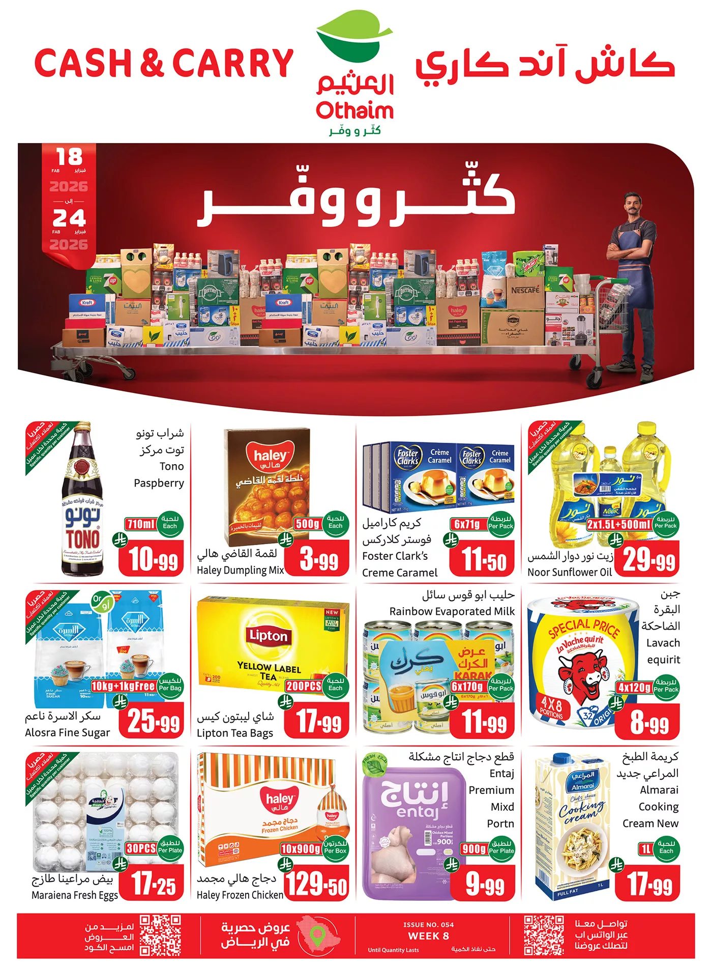 عروض العثيم الاسبوعية بتقدم كمان اللحوم والدواجن المجمدة والمعلبات كالتونة والحليب المبخر وتشكيلة واسعة من الحلويات والبسكويت ومستلزمات الإفطار مع توفر المشروبات مع عروض كاش اند كاري