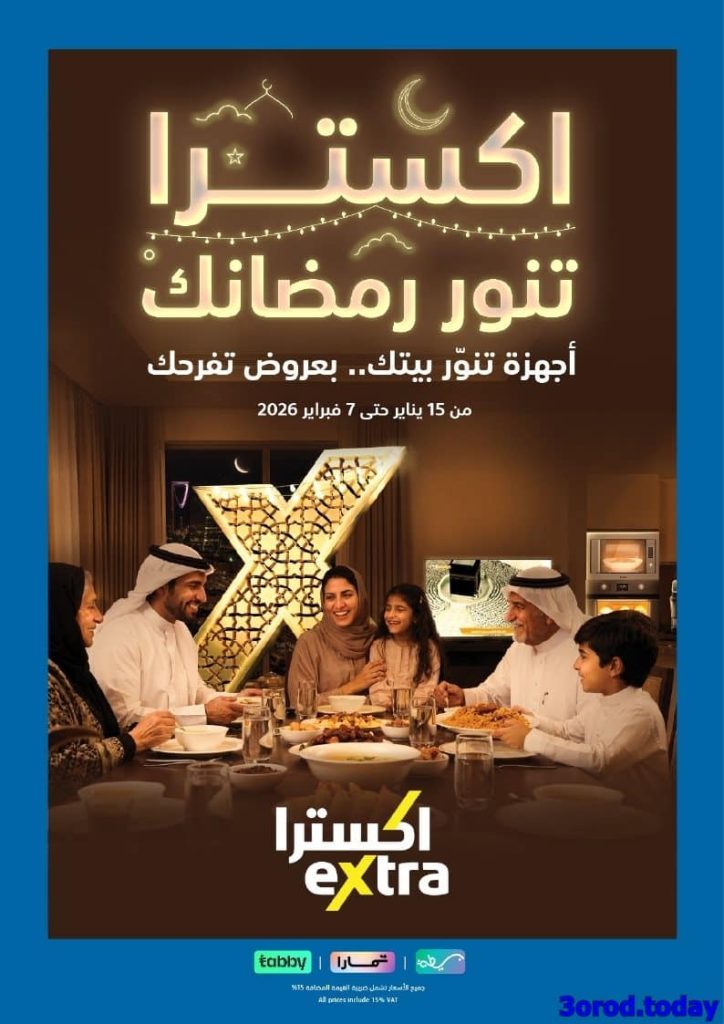 نستعرض معاكم اليوم احدث عروض اكسترا السعودية لشهر رمضان الكريم السبت 17 يناير 2026 الموافق 28 رجب 1447هـ و بتحتوي علي تشكيلة من الاجهزة الكهربائية منها الغسالات و الثلاجات و الخلاطات و بتضم كمان اجهزة تحضير القهوة و الادوات الضرورية للمطبخ و باسعار مميزة في عروض رمضان 2026 ابقوا معنا ليصلكم كل جديد