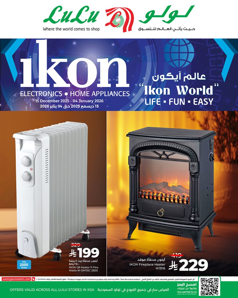 عروض لولو السعودية الاسبوعية مستمرة حتي الاحد 4-1-2026 و تحتوي علي تشكيلة من افضل الدفايات الكهربائية و الزيوت من اشهر علامة تجارية و هي ايكون و تتميز عروض اليوم بالكثير من التخفيضات في الاسعار خلي بيتك دافئ و مريح مع افضل تخفيضات لولو السعودية علي الدفايات و ابقوا معنا ليصلكم كل جديد عن عروض السعودية