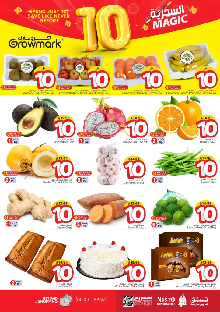 عروض نستو القصيم الأسبوعية الأربعاء 30 ربيع الآخر 1447هـ تحتوي على خصومات على مجموعة من المنتجات الغذائية المتنوعة مثل المخبوزات والمعجنات والعصائر الطازجة والبهارات المحلية ومكونات الأرز كما تشمل عروضا على أجهزة القهوة وأفران البيتزا وأجهزة التحضير وأدوات المائدة الزجاجية وغيرها من الالكترونيات