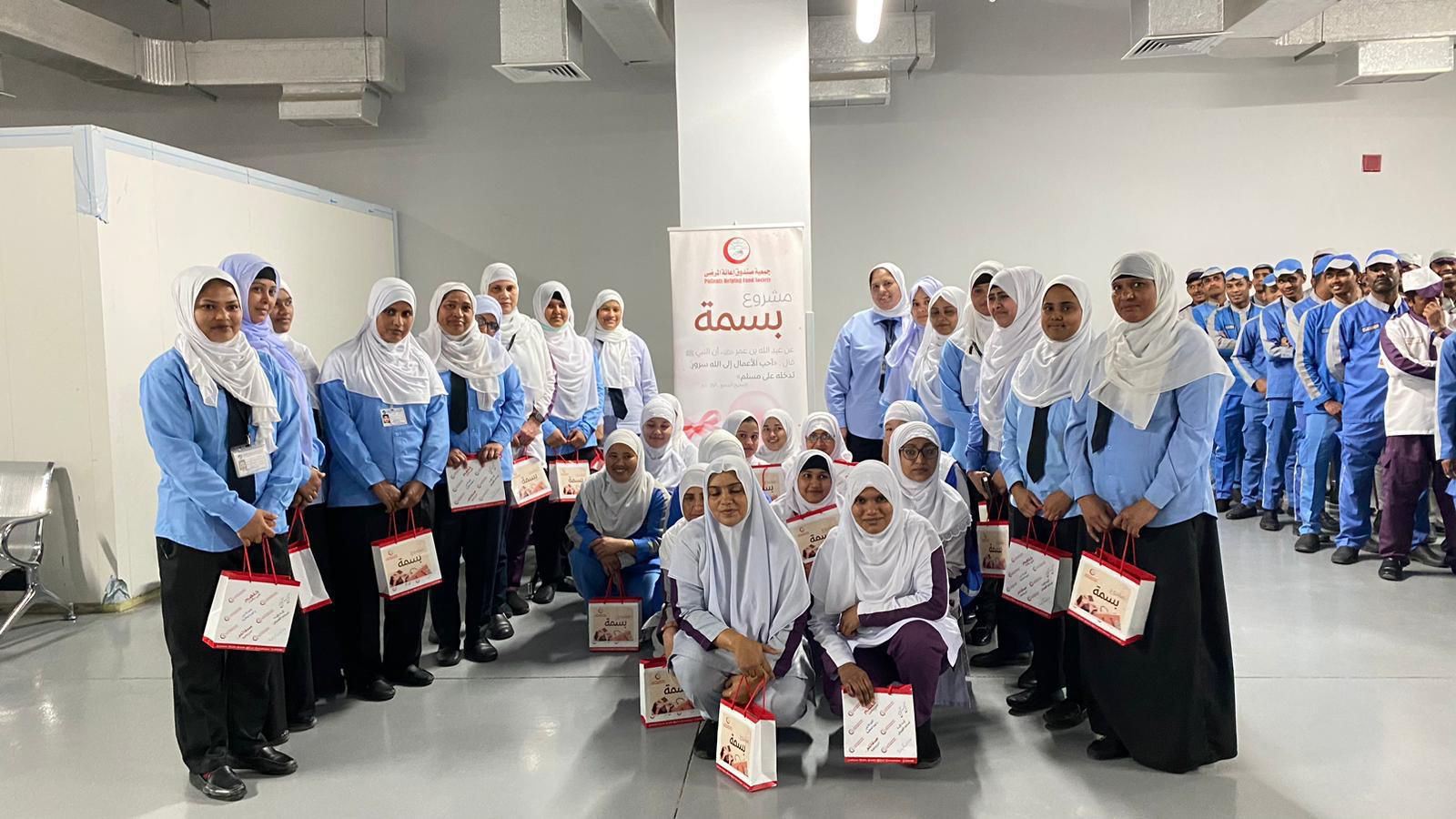 قامت جمعية صندوق إعانة المرضى ممثلة بإدارة التوعية والإرشاد قسم الواعظات بتوزيع هدايا العيد على العمال في المستشفيات ضمن مشروعها الانساني “بسمة” .